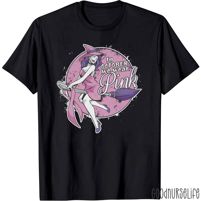 Witch Themed Breast Cancer Awareness In October Nurse T-Shirt
