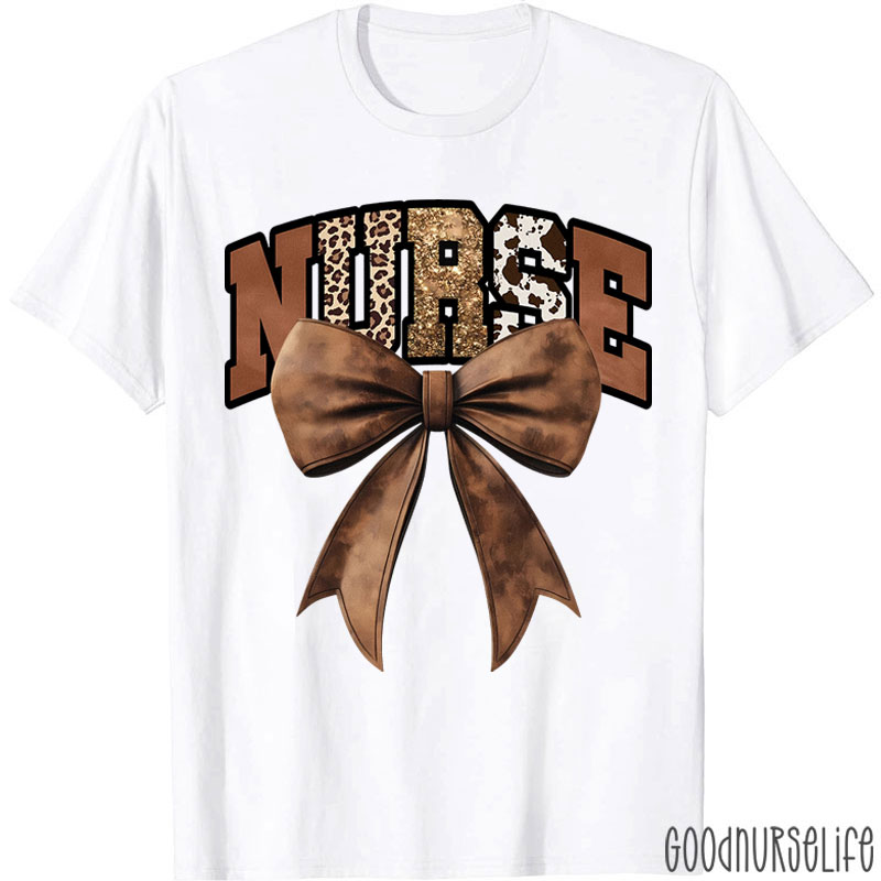 Western Gold Glitter Brown Leather Bow Nurse T-Shirt