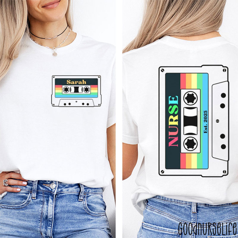 Personalized Retro Nurse Cassette Tape Nurse Two Sided T-Shirt