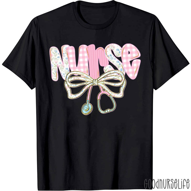Personalized Floral Stethoscope Coquette Bow Nurse Life T-Shirt