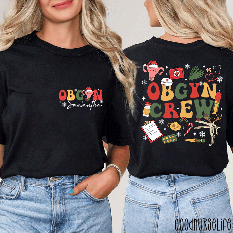 Personalized Name OBGYN Crew Nurse Two Sided T-Shirt