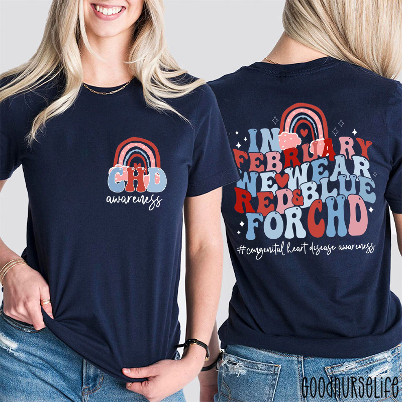 In February We Wear Red And Blue For CHD Two Sided T-Shirt