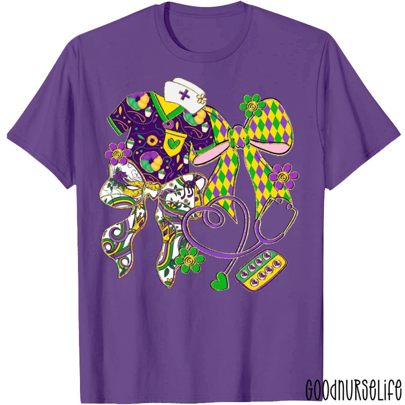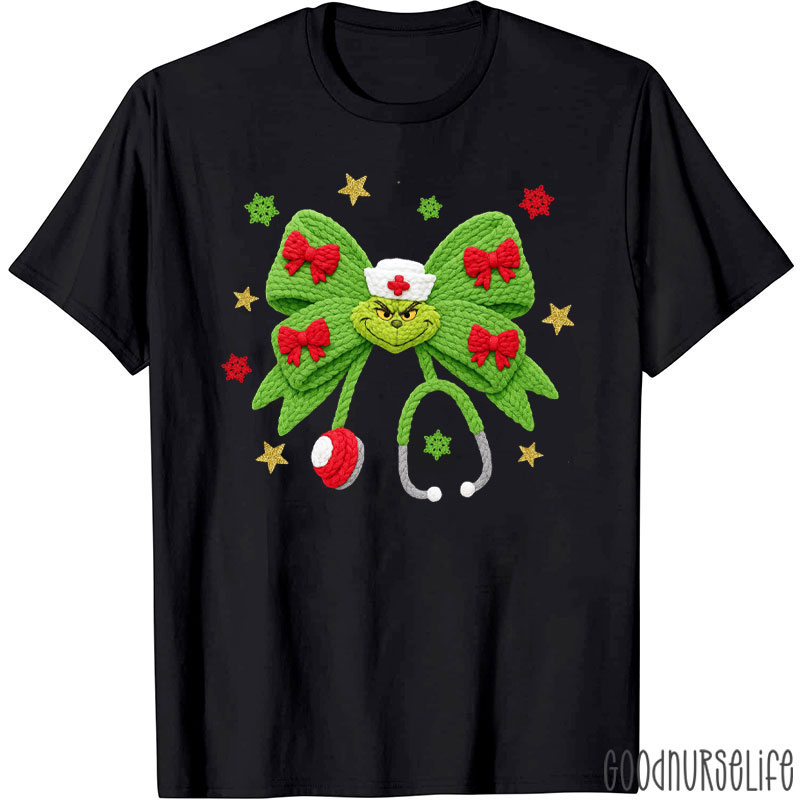 Christmas Nurse Faux Knitted Stethoscope Bow Nurse T-Shirt