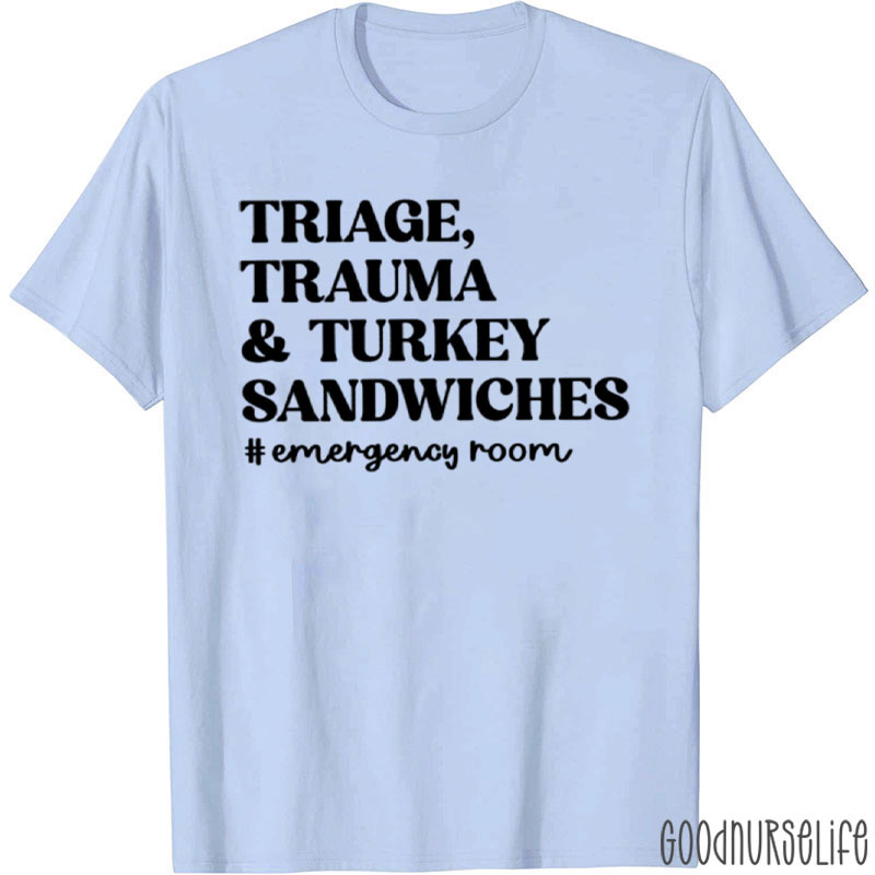 Triage Trauma And Turkey Sandwiches Emergency Room Nurse T-Shirt