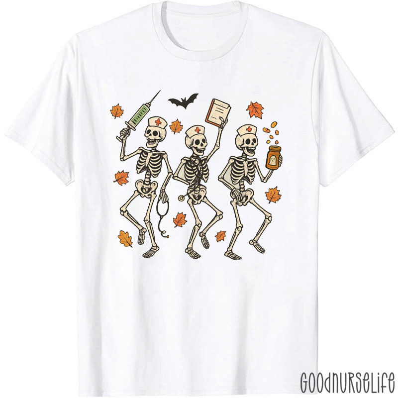 Spooky Skeleton Nurses With Medical Tools Nurse T-Shirt