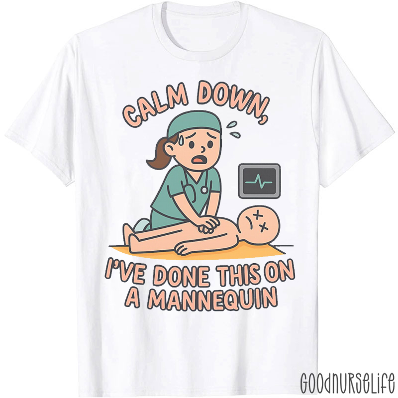 Humor Nurse Calm Down I've Done This On A Mannequin Nurse T-shirt