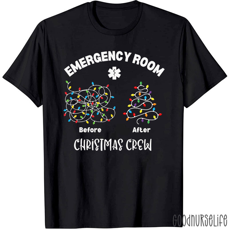 Emergency Room Before After Lights Christmas Crew Nurse T-Shirt