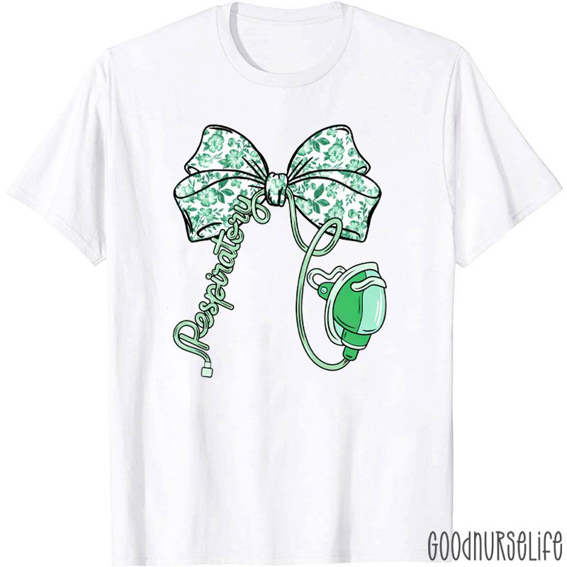 Floral Toile Bow Respiratory Therapy T-shirt