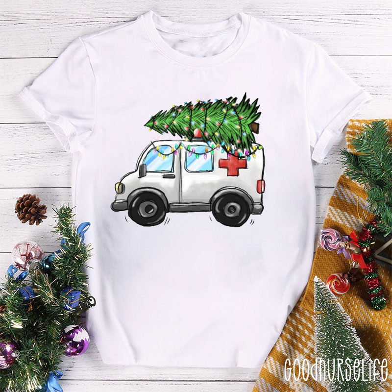 Ambulance And Christmas Tree Nurse T-shirt