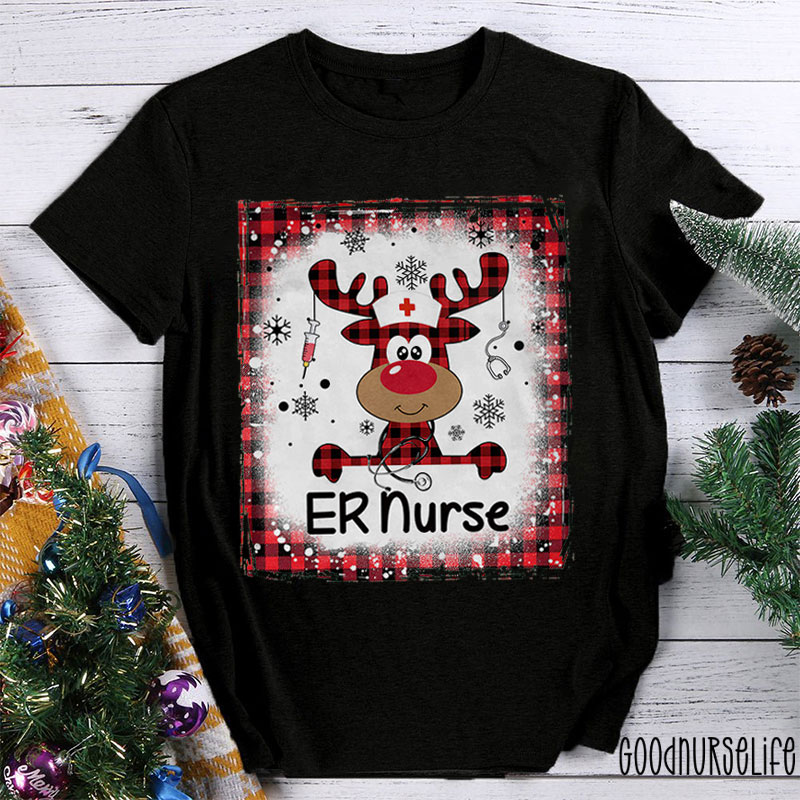 Personalized Christmas Red Plaid Elk Nurse T-shirt