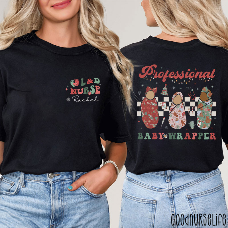 Personalized Professional Baby Wrapper Christmas Swaddled Baby Nurse Two Sided T-Shirt
