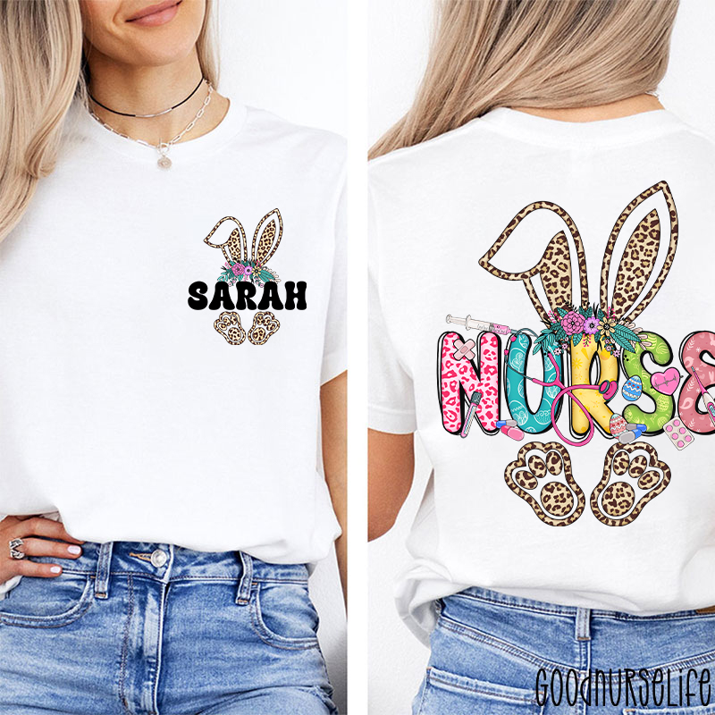 Personalized Easter Nurse Bunny Nurse Two Sided T-Shirt