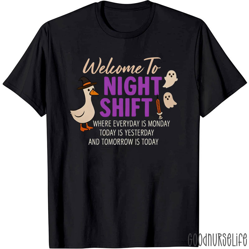 Halloween Ghost And Duck Welcome To Night Shift T-Shirt