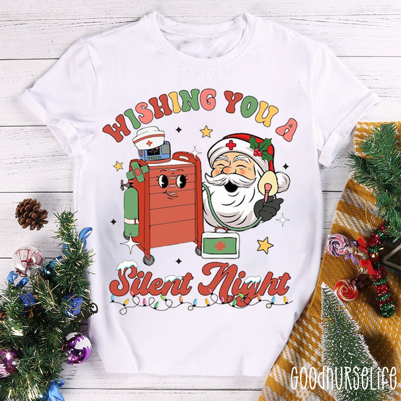 Wishing You A Silent Night Nurse Christmas T-Shirt