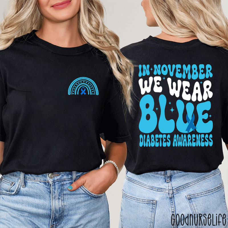 In November We Wear Blue Diabetes Awareness Nurse Two Sided T-Shirt
