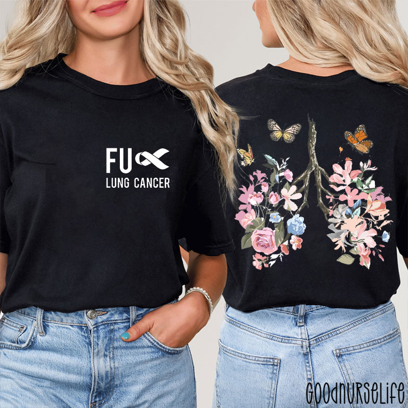 Floral Lung Cancer Awareness Two Sided T-Shirt