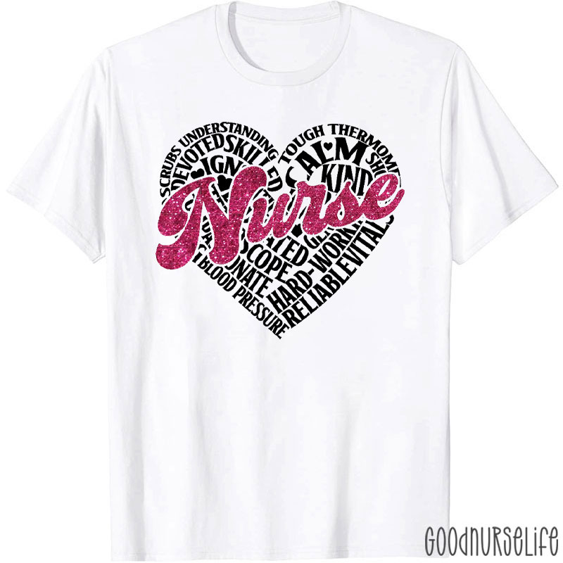 Heart Shaped Nursing Attributes Nurse T-Shirt