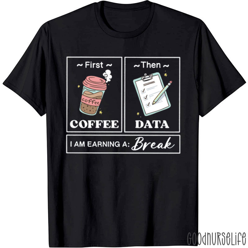 First Coffee Then Data I Am Earning A Break T-Shirt