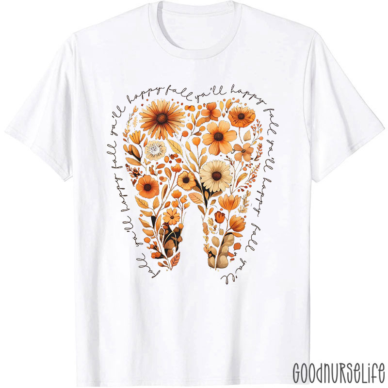 Floral Tooth Happy Fall Y'all T-Shirt