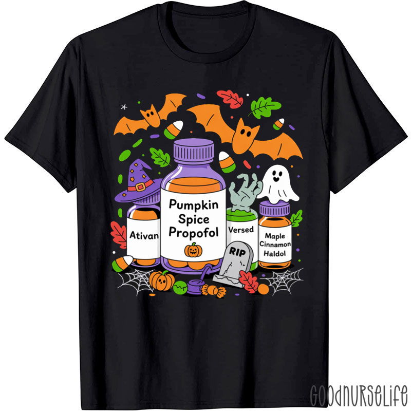 Pumpkin Spice Propofol Ativan Versed Haldol Halloween Nurse T-Shirt