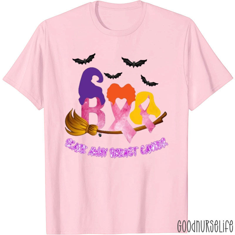 Halloween Witchy Warriors Scare Away Breast Cancer Nurse T-Shirt