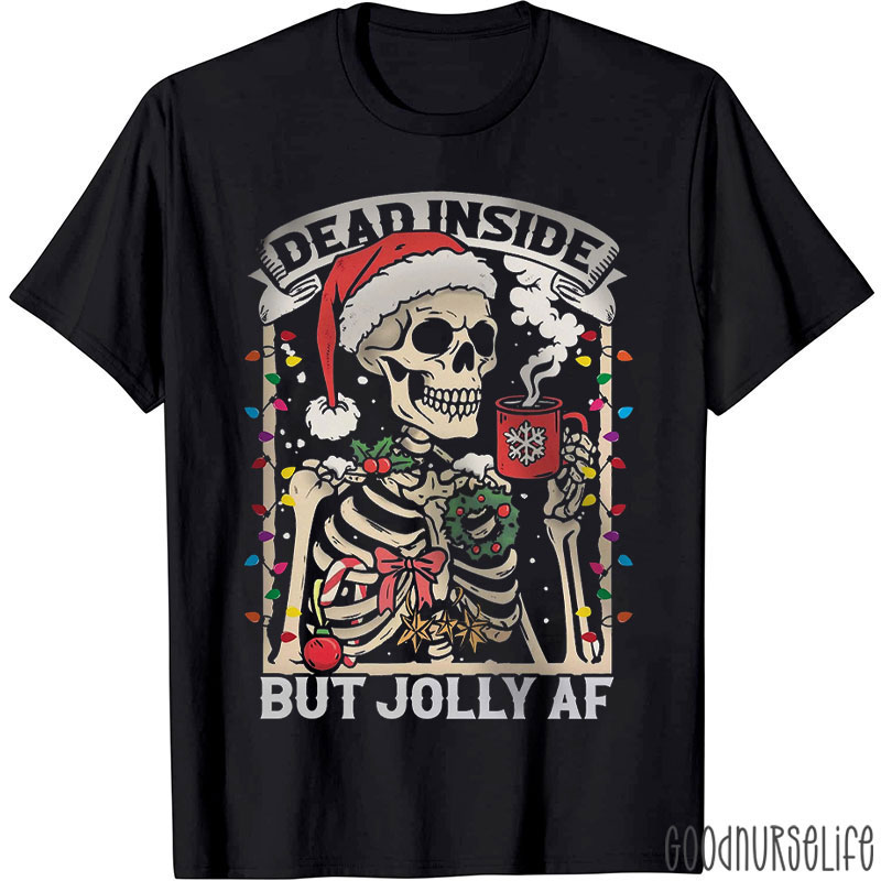 Dead Inside But Jolly AF Skeleton Christmas T-Shirt