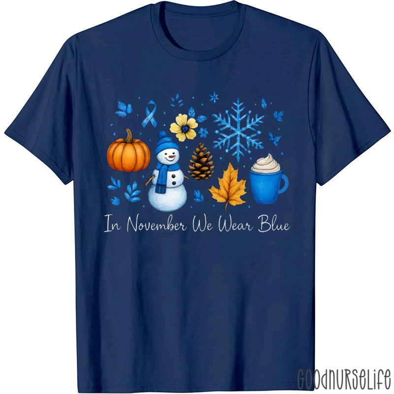 In November We Wear Blue Winter Diabetes Awareness Nurse T-Shirt