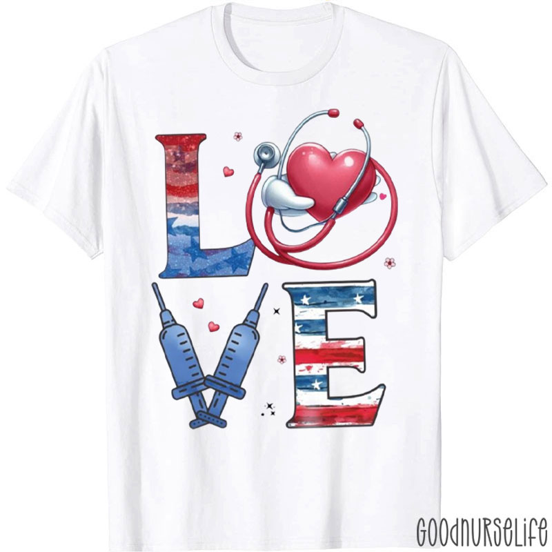 Love Nurse Life 4th Of July American Flag Patriotic Nurse T-Shirt
