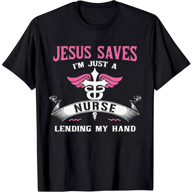 Jesus Saves I'm Just A Nurse Lending My Hand Nurse T-shirt