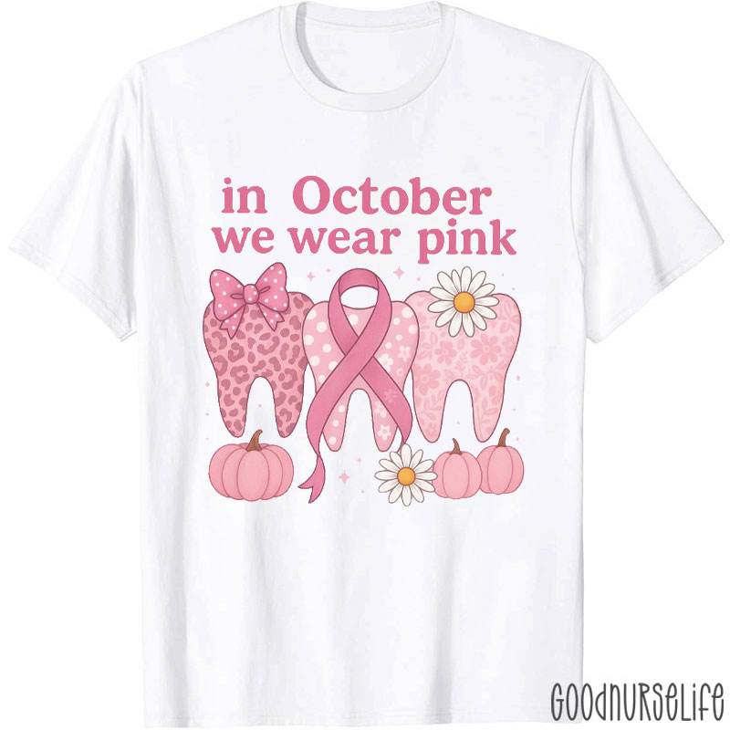 In October We Wear Pink Dental And Pumpkin Breast Cancer Awareness T-Shirt
