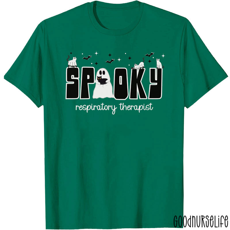 Halloween Cute Ghost Cats Spooky Respiratory Therapist T-Shirt