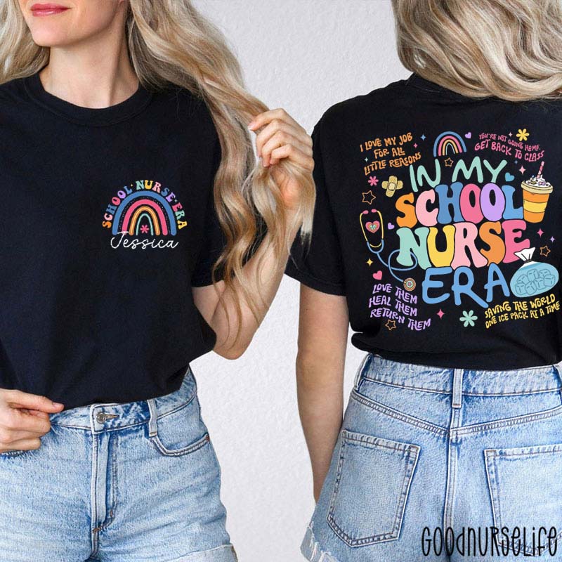 Personalized In My School Nurse Era School Nurse Crew Nurse Two Sided T-Shirt