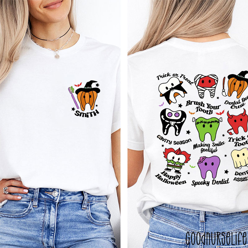 Personalized Spooky Tooth Themed Halloween Two Sided T-Shirt