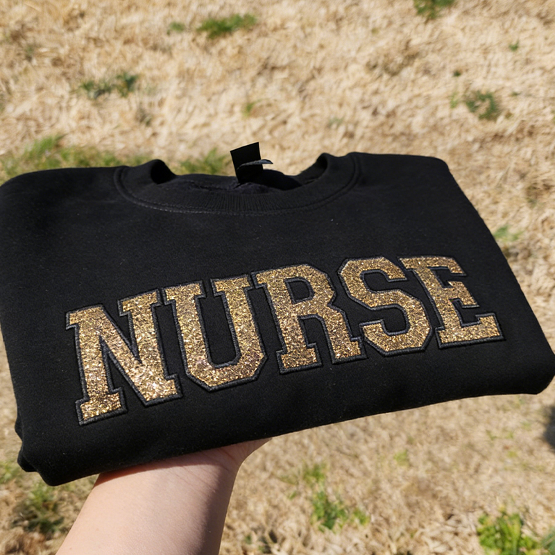 Personalized Embroidered Glitter Nurse Sweatshirt