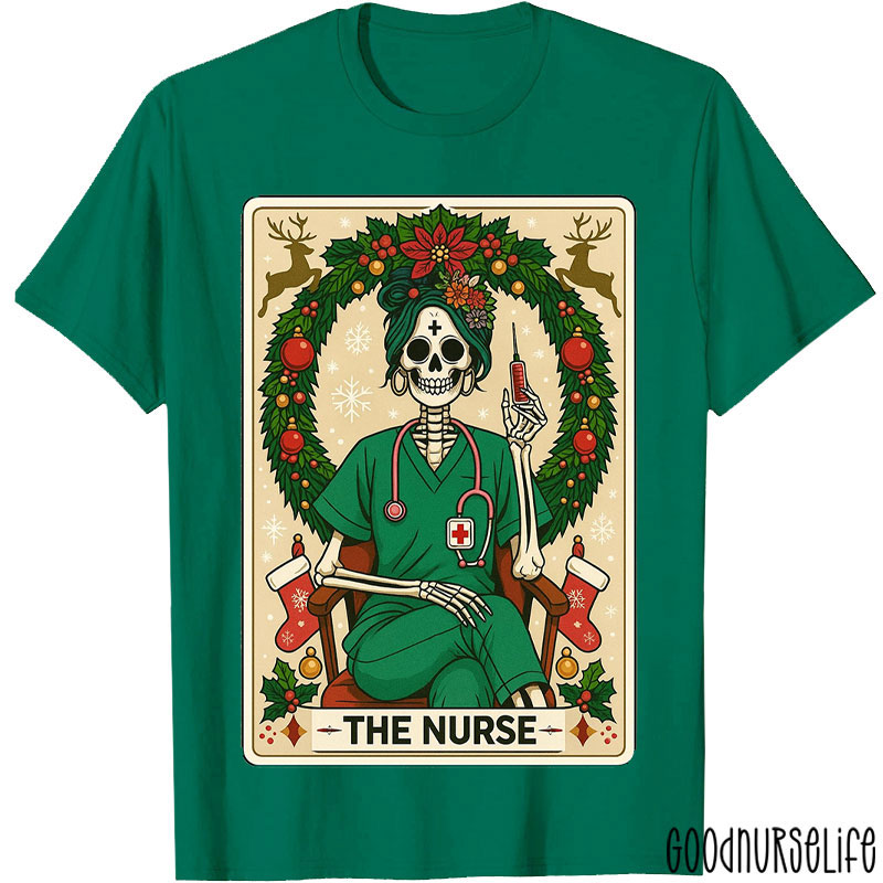 The Nurse Skeleton Tarot Card Festive Nurse T-Shirt