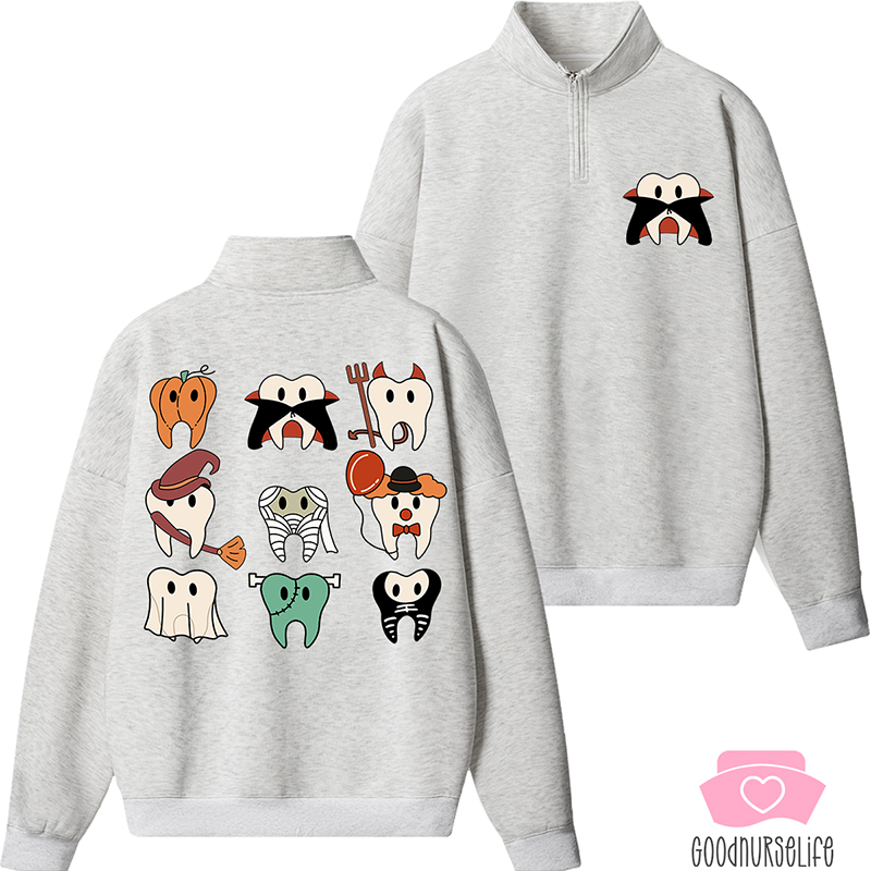 Halloween Tooth Queue Dental Quarter Zip Sweatshirt