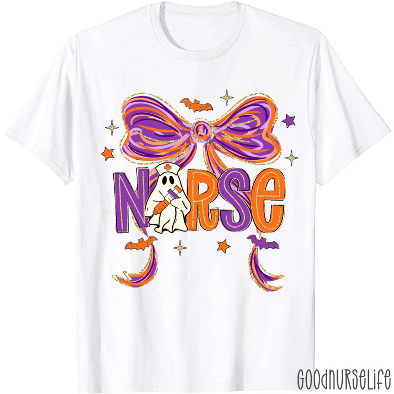 Halloween Style Bow Tie Ghost Nurse T-Shirt