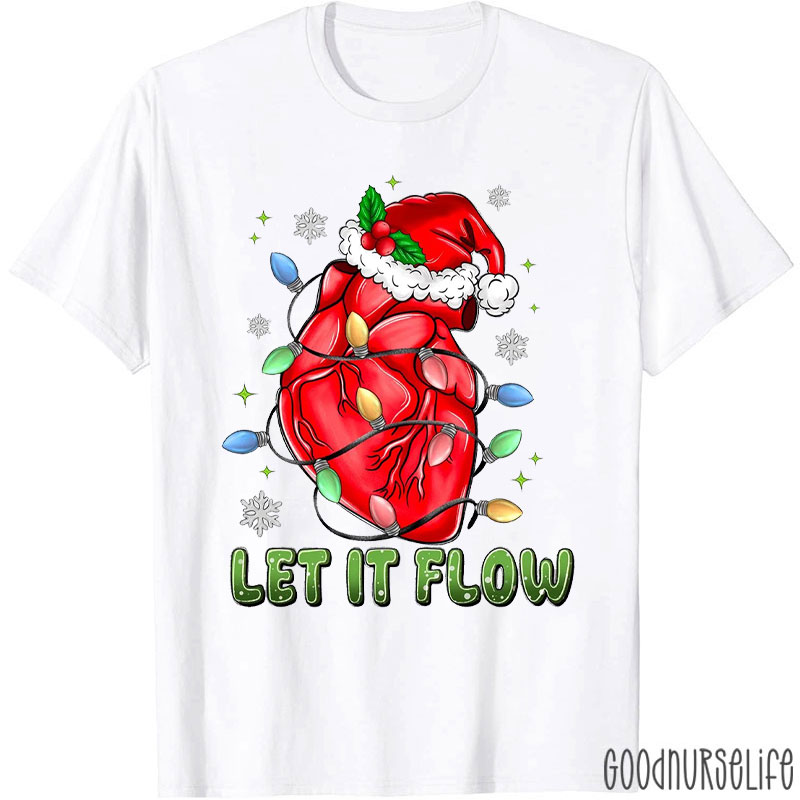 Let It Flow Heart With Christmas Lights And Santa Hat T-Shirt