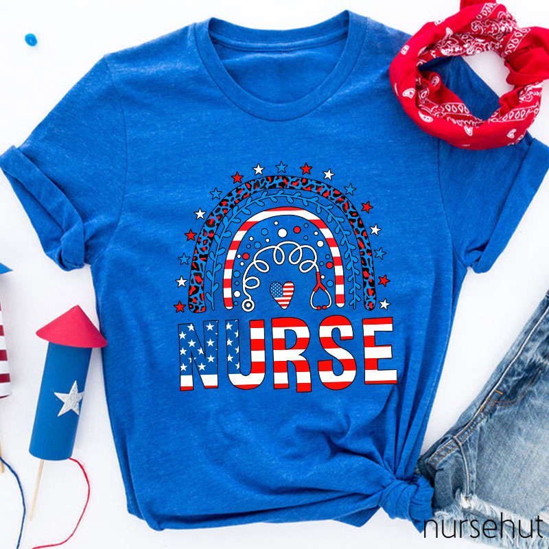 Independence Day Rainbow Heart Nurse T-Shirt