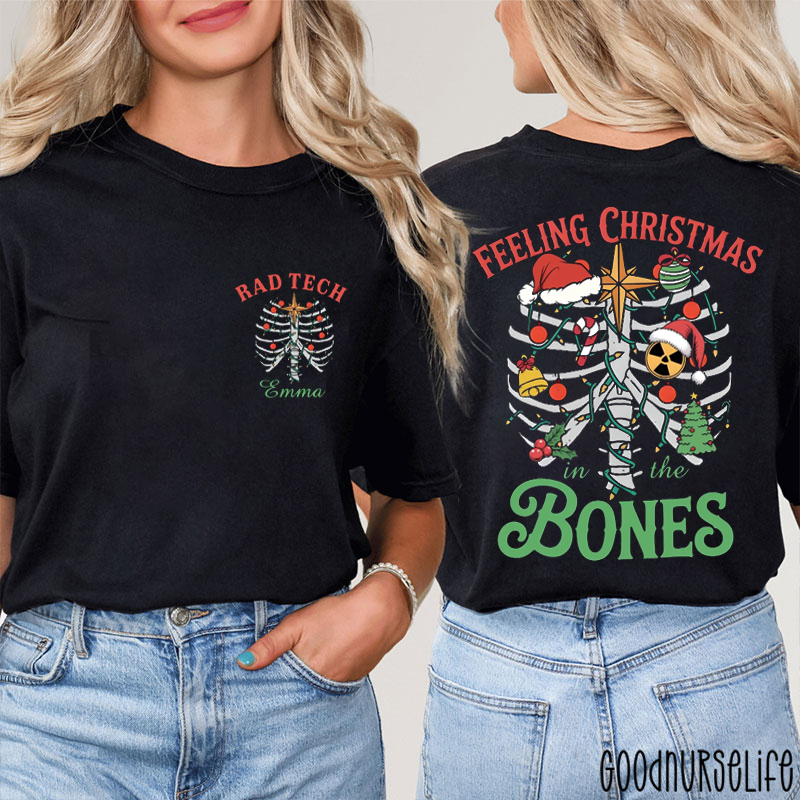 Personalized Feeling Christmas In The Bones Rad Tech Two Sided T-Shirt