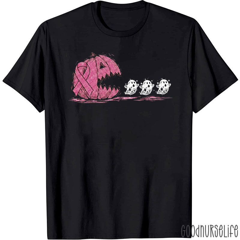 Halloween Breast Cancer Awareness Pumpkin Ghosts Nurse T-Shirt