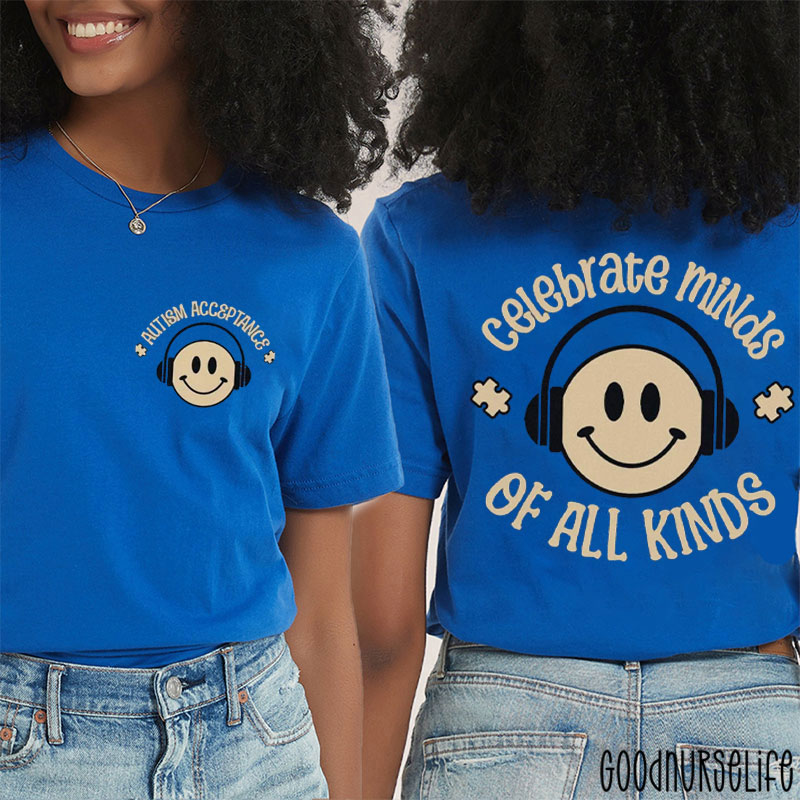 Celebrate Minds Of All Kinds Autism Awareness Two Sided T-Shirt