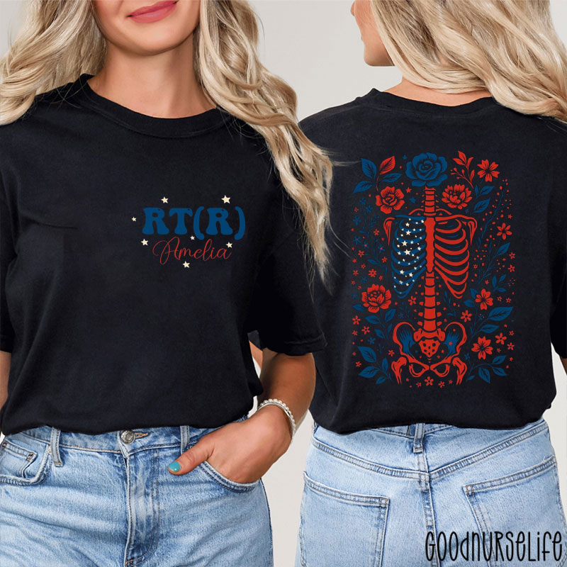 Personalized 4th Of July Skeleton RT Pulmonary Nurse Two Sided T-Shirt