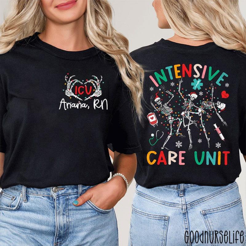 Personalized Name Intensive Care Unit Nurse Two Sided T-Shirt