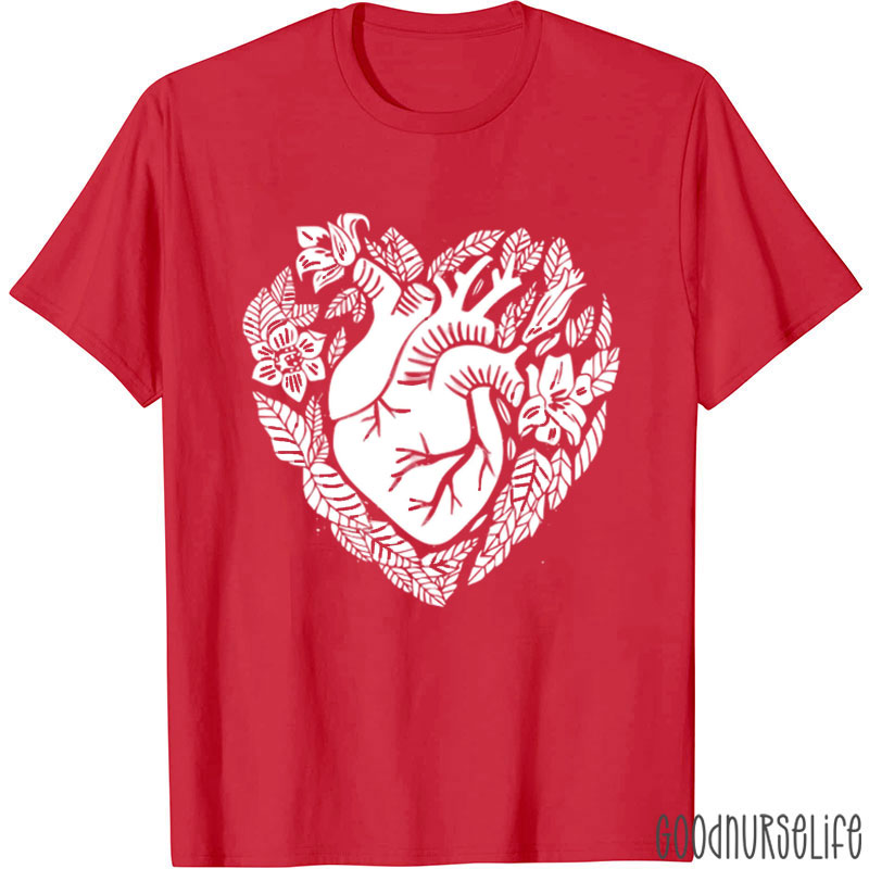Anatomical Heart With Flowers Nurse T-Shirt