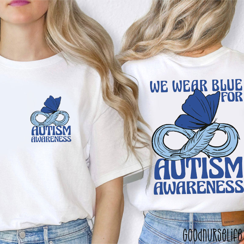 Butterfly We Wear Blue For Autism Awareness Two Sided T-Shirt