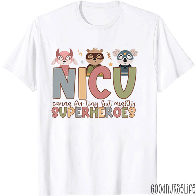 NICU Caring For Tiny But Mighty Superheroes Nurse T-Shirt