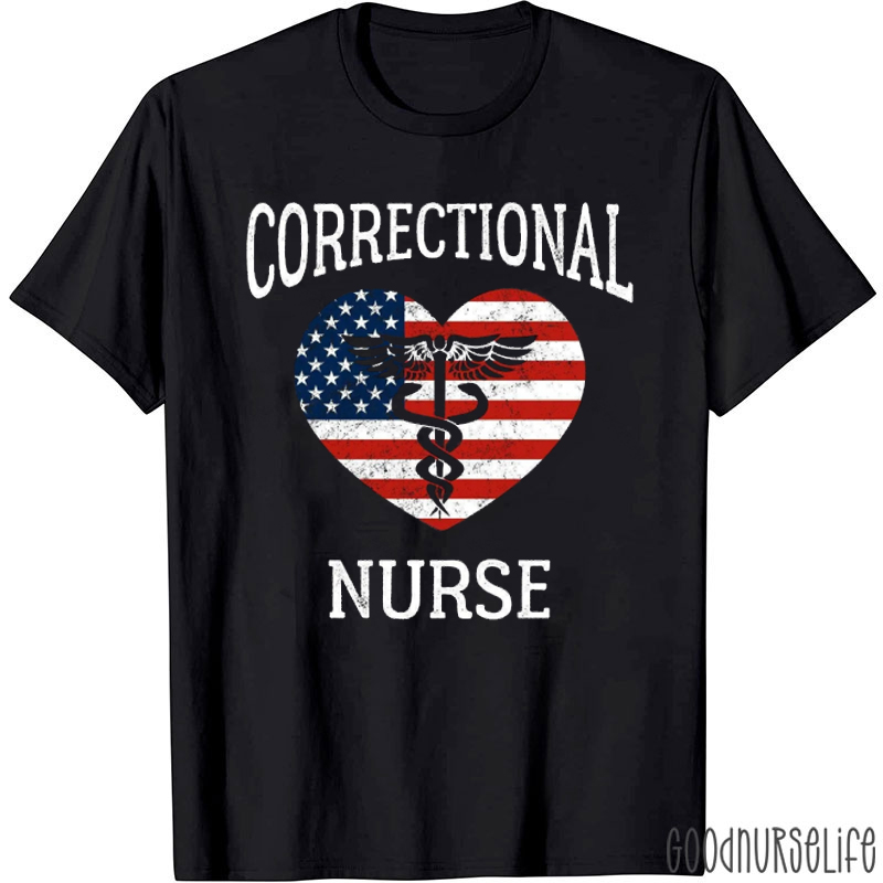 America Flag Heart Corrections Nurse T-Shirt