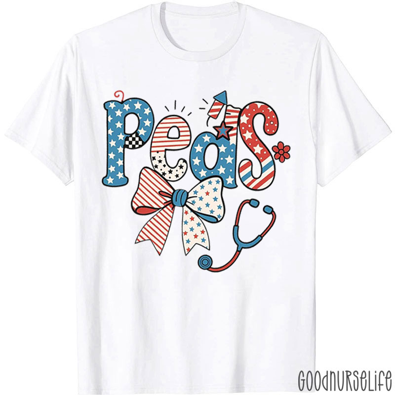 4th Of July American Flag Stethoscope Pediatric Nurse T-Shirt