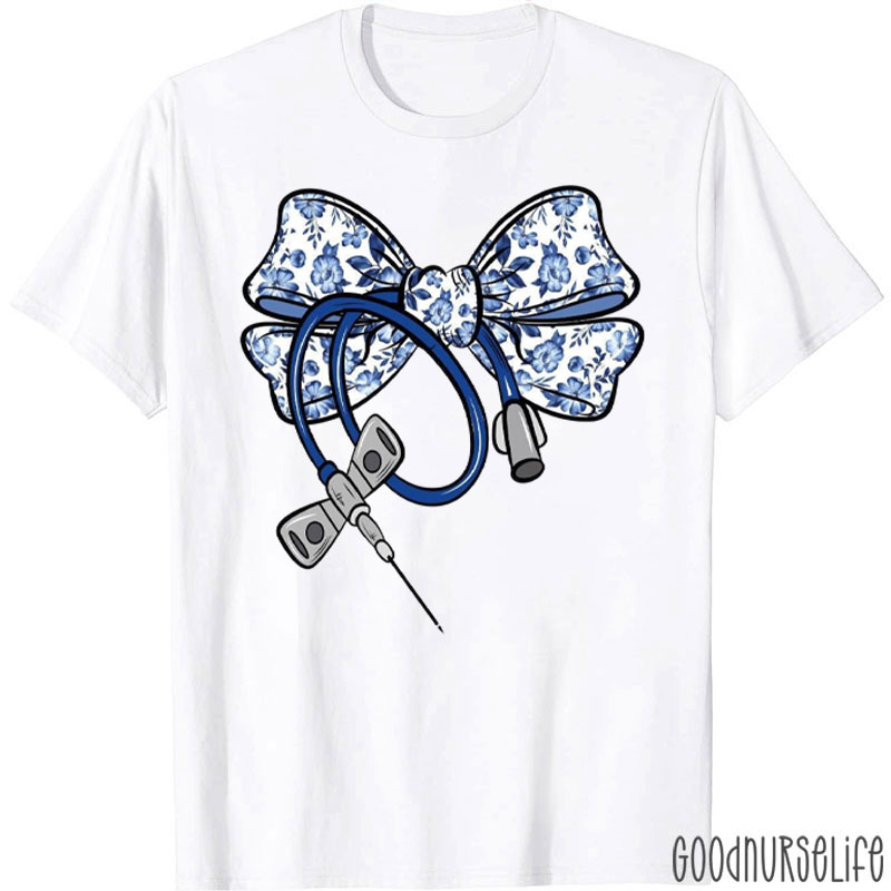 Blue Floral Coquette Bow Phlebotomist Nurse T-Shirt